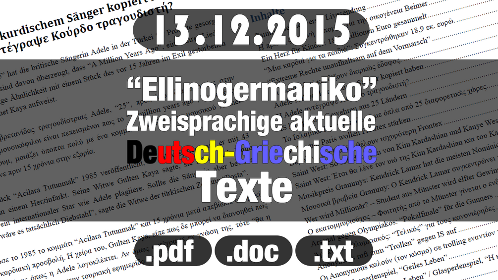 "Ellinogermaniko" bietet aktuelle zweisprachige Texte auf griechisch und deutsch / Το "Ellinogermaniko" προσφέρει επίκαιρα δίγλωσσα κείμενα στα γερμανικά και τα ελληνικά