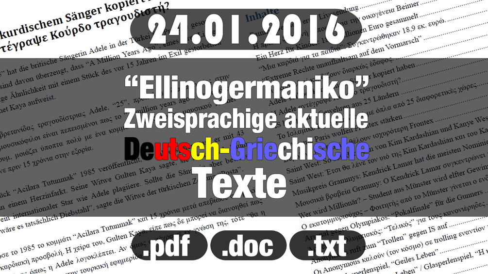 "Ellinogermaniko" bietet aktuelle zweisprachige Texte auf griechisch und deutsch / Το "Ellinogermaniko" προσφέρει επίκαιρα δίγλωσσα κείμενα στα γερμανικά και τα ελληνικά